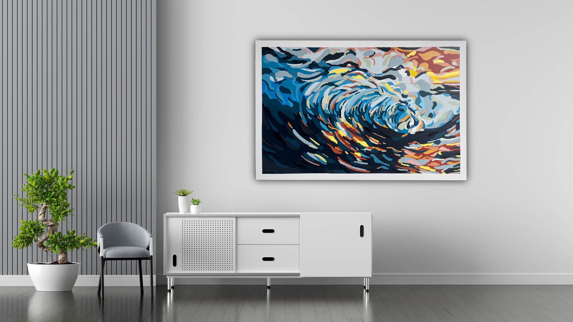 Owner of Pink Solutions Chris Parsons also creates art. He has always loved art and also the ocean, particularly waves and now enjoys painting abstract artworks of ocean scenes using acrylics to create striking canvases.